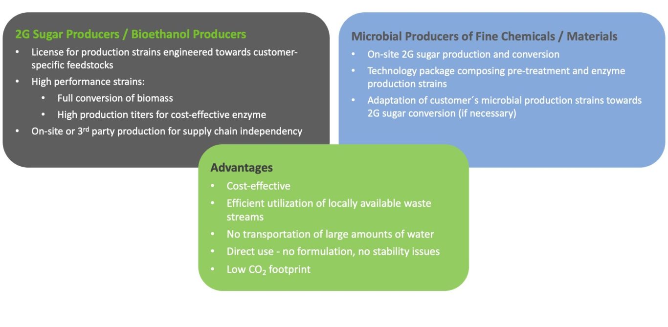 - Long-year experience in the directed evolution of Trichoderma reesei to improve its fermentation properties (productivity, viscosity etc.)